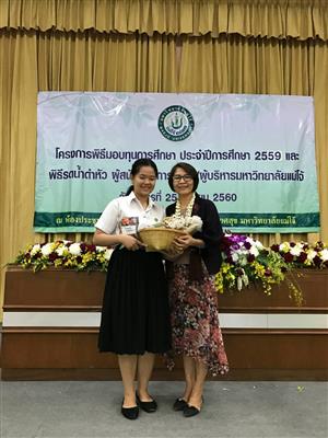 เมื่อวันที่ 25 เมษายน 2560 กองแนะแนว และศิษย์เก่าสัมพันธ์ ได้จัดพิธีมอบทุนการศึกษา ประจำปีการศึกษา 2559 เพื่อให้นักศึกษาที่ได้รับทุนการศึกษาได้มีโอกาสพบปะและแสดงความขอบคุณกับผู้บริหารมหาวิทยาลัยและผู้สนับสนุนทุนการศึกษา ที่ได้ให้ความช่วยเหลือนักศึกษาได้มีโอกาสในการเรียนต่อจนจบการศึกษา ในการนี้ได้มีการมอบทุนการศึกษาคุณดำริห์ แสงสินธุ์ชัย ศิษย์เก่าแม่โจ้รุ่นที่ 46 จำนวน 1 ทุน ทุนละ 56,000 บาท โดยมีคุณพิไลลักษณ์ แสงสินธุ์ชัย เป็นผู้มอบทุนให้แก่นางสาวสุภาวดี จ๊ะนวน นักศึกษาชั้นปีที่ 2 สาขาวิชาพลังงานทดแทน ณ ห้องประชุมอาคม กาญจนประโชติ มหาวิทยาลัยแม่โจ้